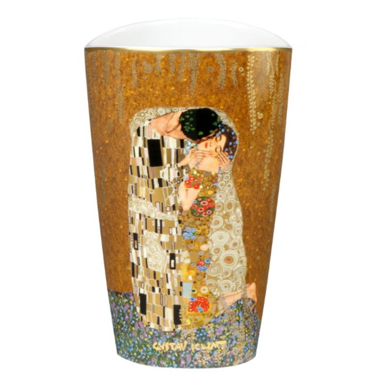 Elegancki wazon wykonany z porcelany o klasycznym kształcie, ozdobiony reprodukcją obrazu Gustawa Klimt 'Pocałunek'