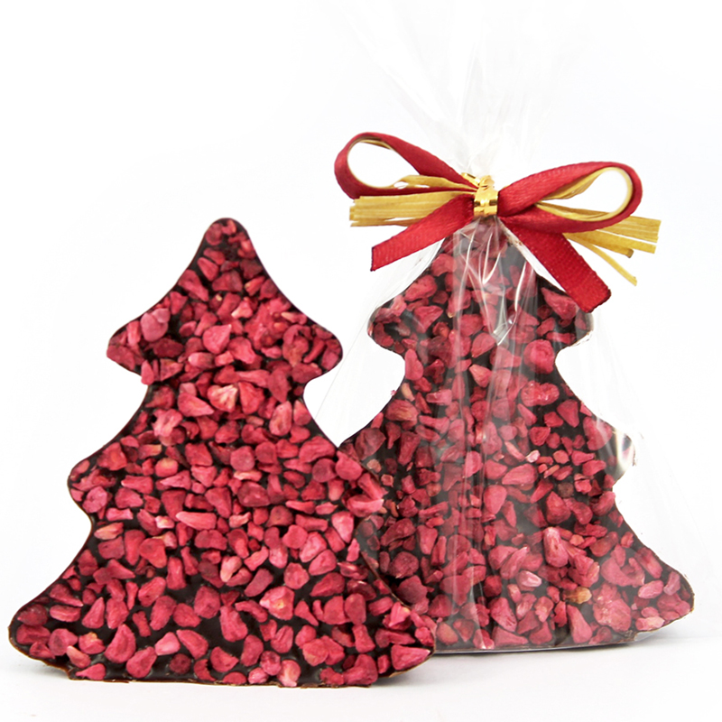 Choinka z ciemnej czekolady z malinami. Niespotykana kompozycja nadaje jej wyjątkowy smak.