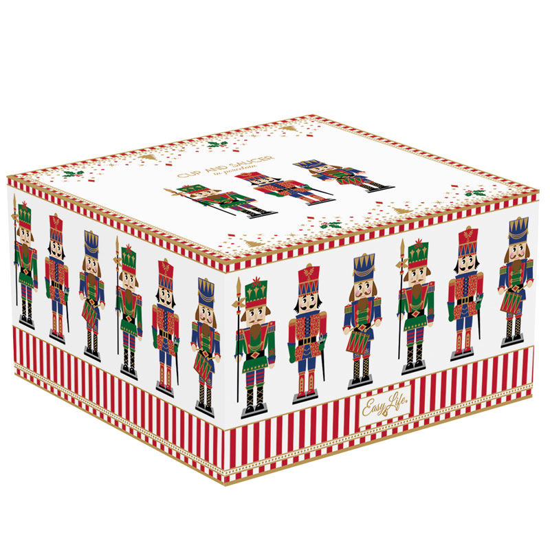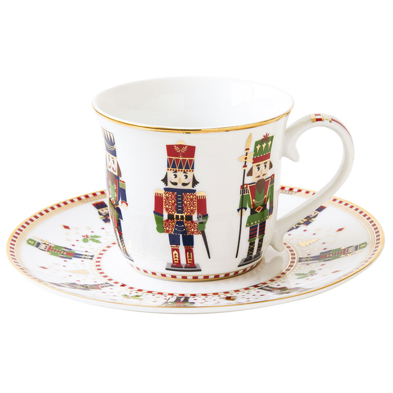 Klasyczna filiżanka ze spodkiem o regularnym kształcie, w świąteczne wzory. Filiżanka zapakowana jest w pudełko w takim samym motywie kolorystycznym. Może być ciekawym upominkiem.