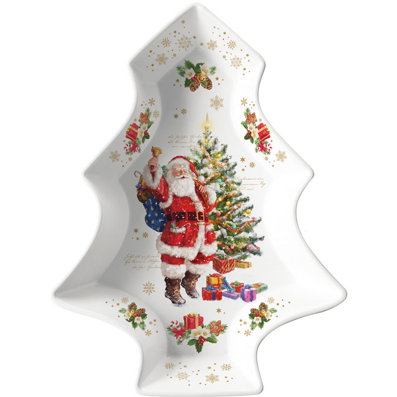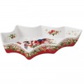 Klasyczny, porcelanowy talerz. Talerz o gwiaździstym kształcie w świąteczne wzory. Może być ciekawym pomysłem na prezent. Talerz jest zapakowany w świąteczne pudełko.
