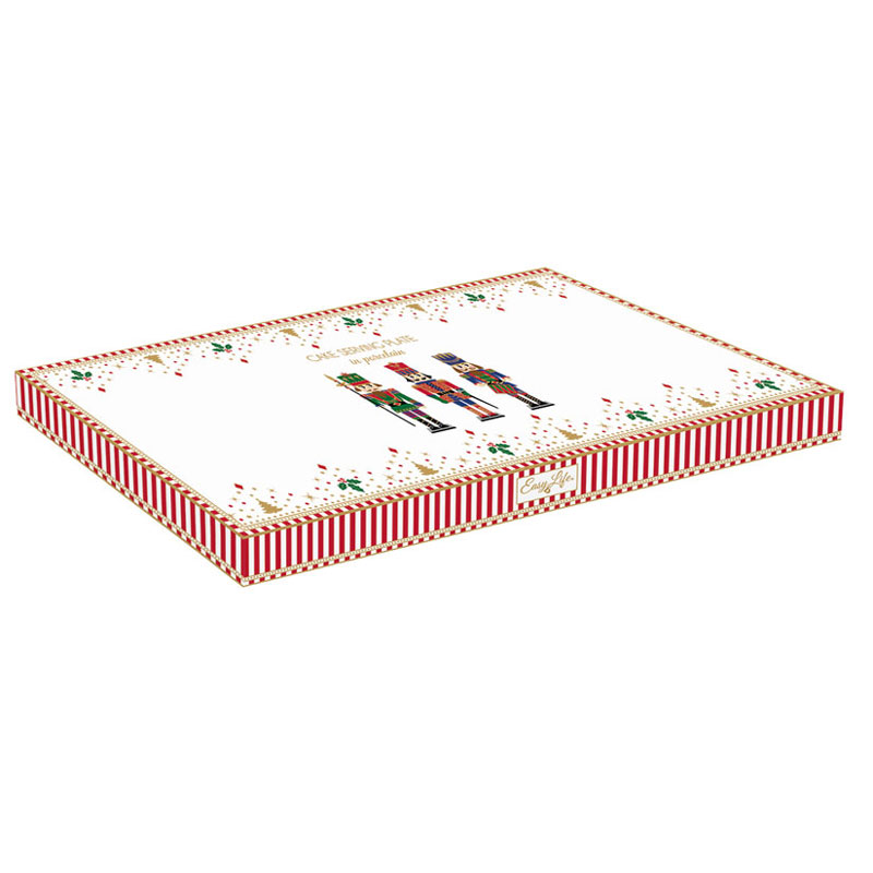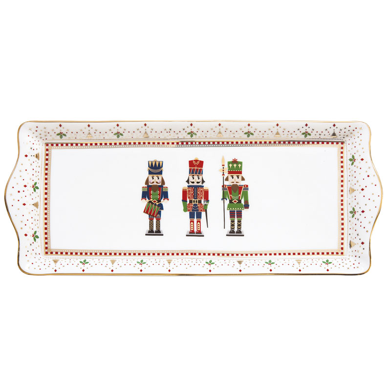 Porcelanowa taca o klasycznym kształcie w świąteczne wzory. Idealnie się sprawdzi jako świąteczny prezent. Taca jest zapakowana w świąteczne pudełko.