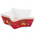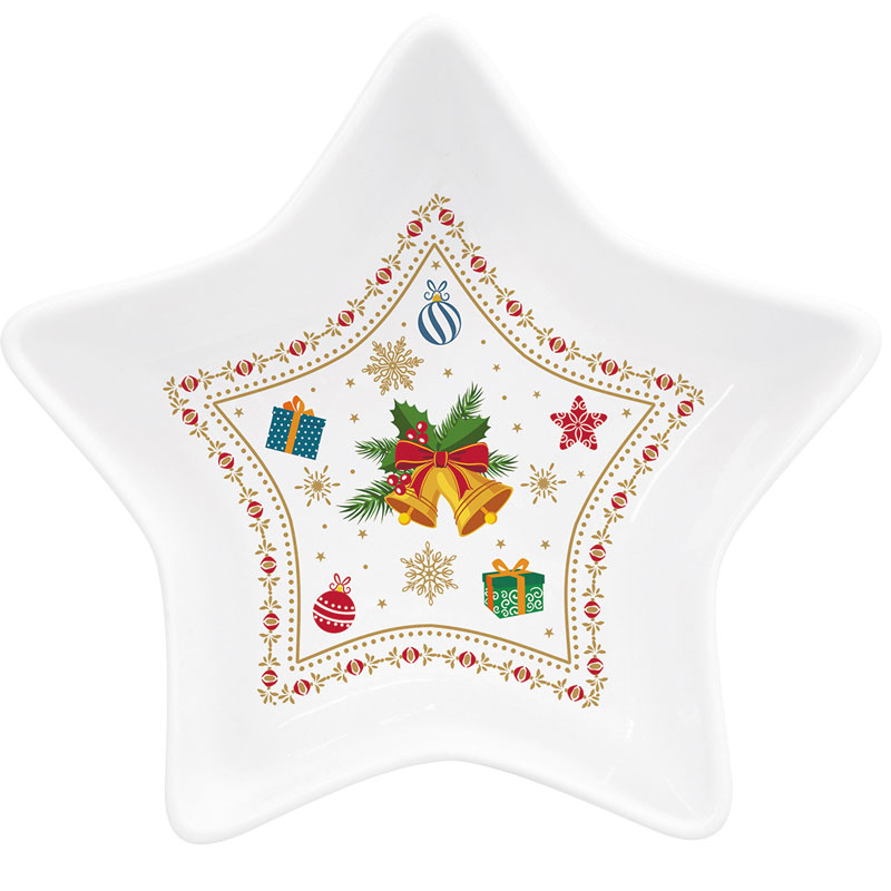 Pojemna miska w kształcie gwiazdy w piękne świąteczne wzory. Miska zapakowana jest w pudełko w takim samym motywie kolorystycznym. Może być ciekawym upominkiem.