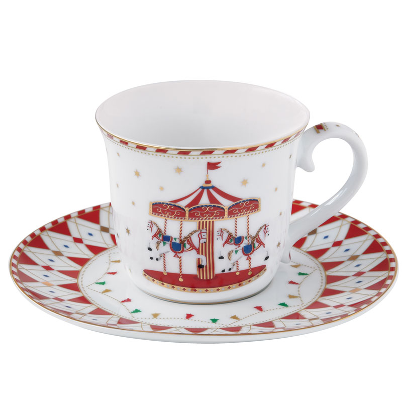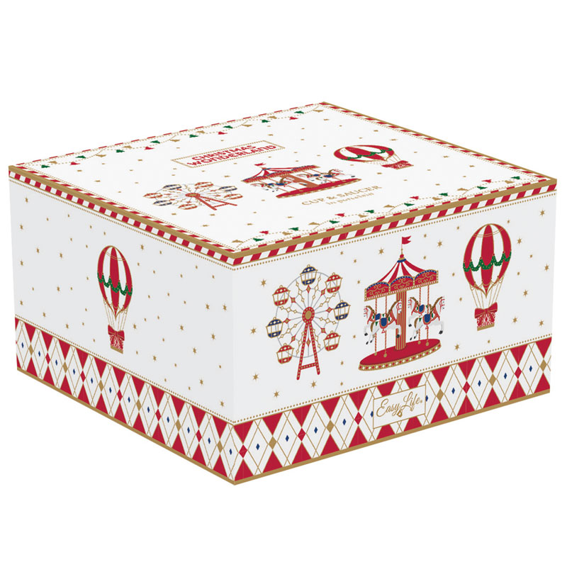Kolorowa filiżanka wykonana z porcelany w wyjątkowym kształcie udekorowana świątecznym wzorem. Filiżanka jest zapakowana w pudełko w takim samym motywie kolorystycznym. Może być ciekawym upominkiem.