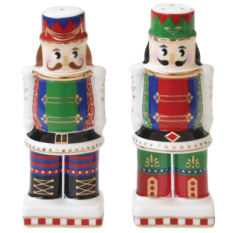 Zestaw porcelanowych pojemniczków na sól i pieprz w świąteczne wzory. Może być ciekawym pomysłem na prezent.