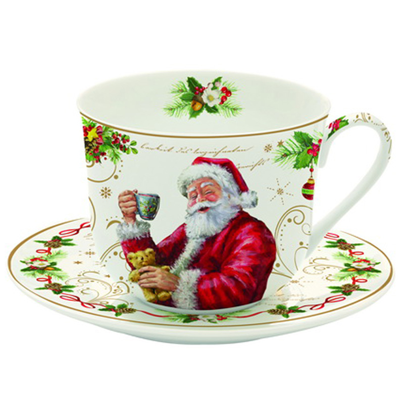 Śniadaniowa, porcelanowa filiżanka o prostym kształcie w świąteczne wzory. Posiada wygodne uszko. Może być ciekawym pomysłem na prezent.