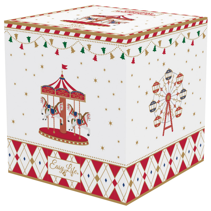 Kolorowy kubek wykonany z porcelany w wyjątkowym kształcie udekorowany świątecznym wzorem. Kubek jest zapakowany w pudełko w takim samym motywie kolorystycznym. Może być ciekawym upominkiem.