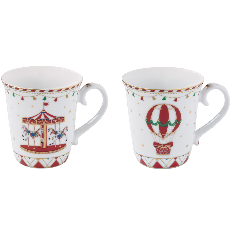Kolorowe kubki wykonane z porcelany w wyjątkowym kształcie udekorowane świątecznym wzorem. Kubki są zapakowane w pudełko w takim samym motywie kolorystycznym. Mogą być ciekawym upominkiem.