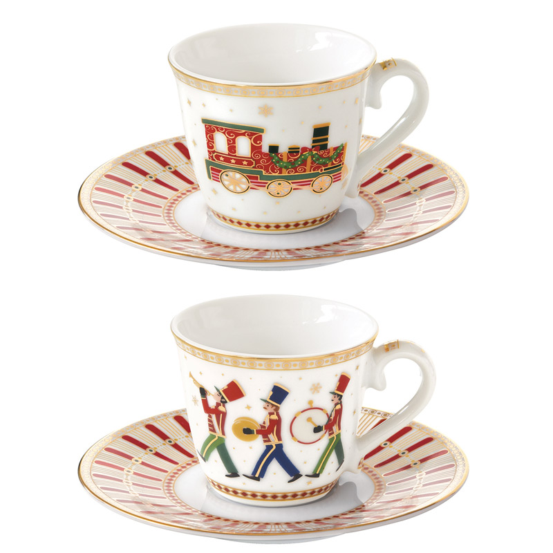 Filiżanki wykonane z wysokiej jakości włoskiej porcelany. Zapakowane są w ozdobne pudełko w podobnym wzorze. Mogą być ciekawym upominkiem.