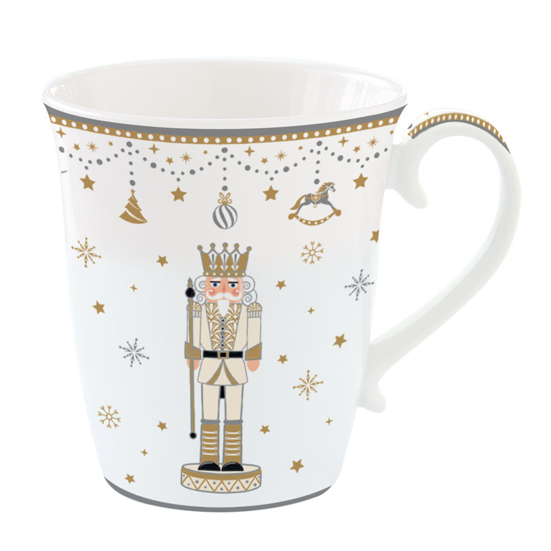 Świąteczny kubek ze wzorem złotego żołnierzyka, wykonany z wysokiej jakości włoskiej porcelany. Zapakowany jest w ozdobne pudełko w podobnym wzorze. Może być ciekawym upominkiem.