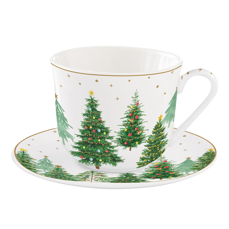 Porcelanowa filiżanka śniadaniowa w świątecznym wzorze. Filiżanka w komplecie posiada tekturowe pudełko, dzięki czemu idealnie nadaje się na prezent.