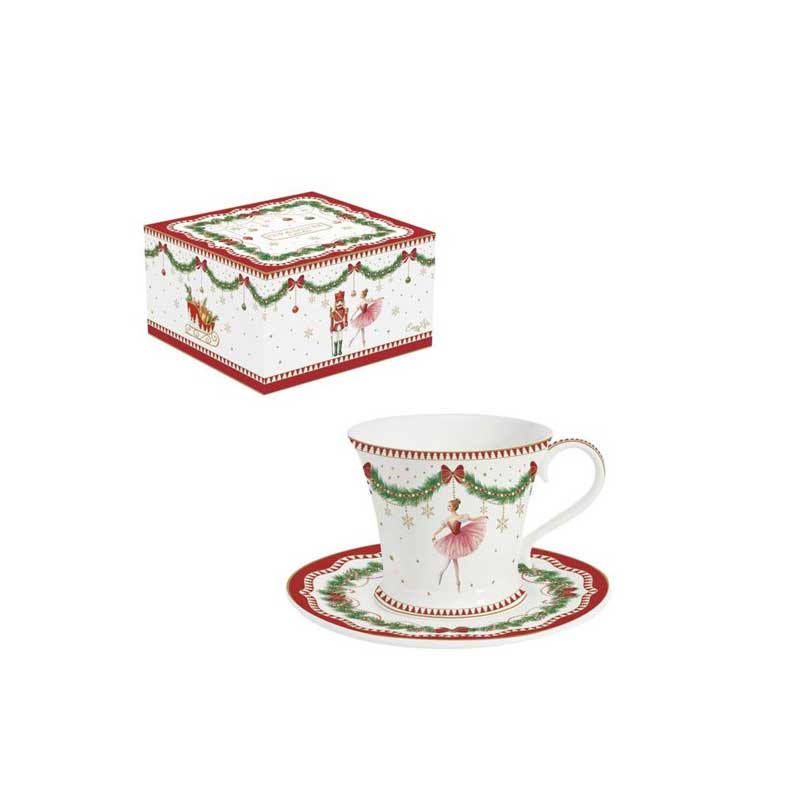 Klasyczna filiżanka ze spodkiem o regularnym kształcie, w świąteczne wzory. Filiżanka zapakowana jest w pudełko w takim samym motywie kolorystycznym. Może być ciekawym upominkiem.