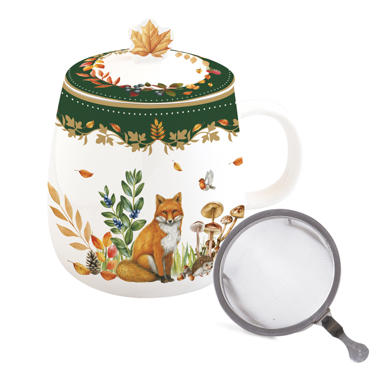 Piękny porcelanowy kubek z zaparzaczem wykonany przez prestiżową, włoską markę Easy Life. Całość zapakowana w ozdobne, firmowe pudełko.
