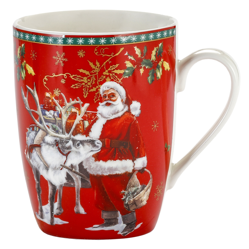 Wygodny kubek wykonany z porcelany w świąteczny wzór z wygodnym dużym uchem.