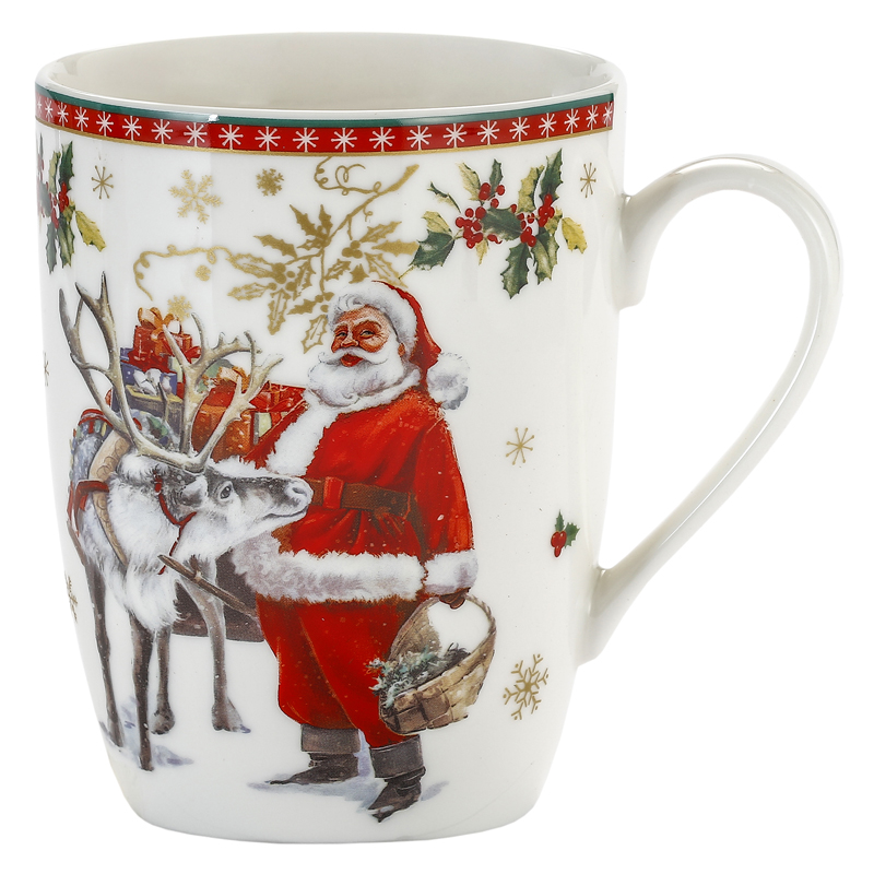 Wygodny kubek wykonany z porcelany w świąteczny wzór z wygodnym dużym uchem.