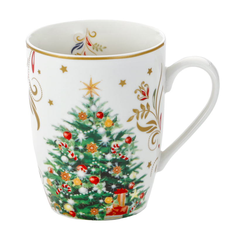 Wygodny kubek wykonany z porcelany w świąteczny wzór z wygodnym dużym uchem.