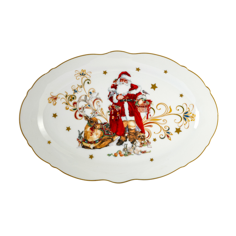 Porcelanowy półmisek o klasycznym kształcie w świąteczne wzory. Idealnie się sprawdzi jako świąteczny prezent.