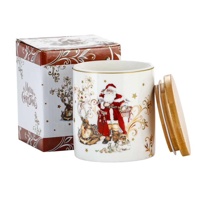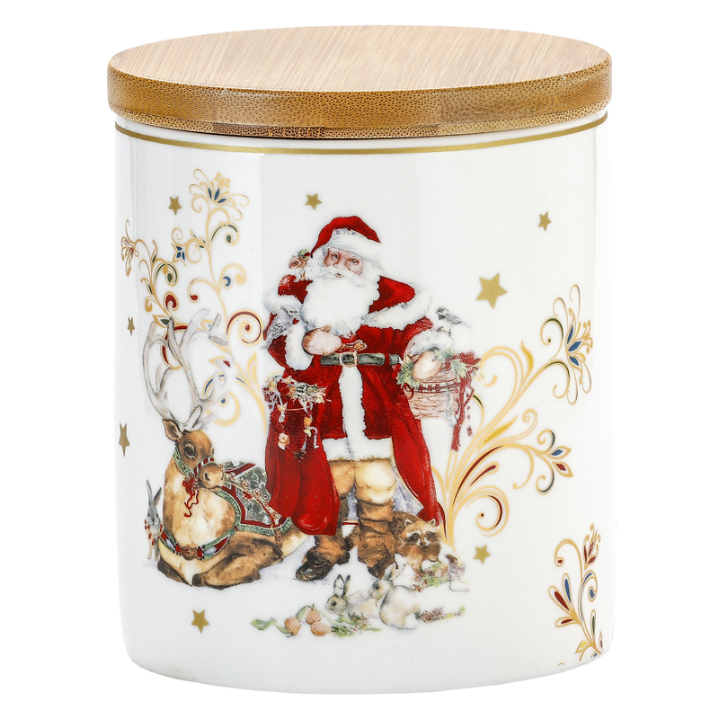 Porcelanowy pojemnik o klasycznym kształcie w świąteczne wzory. Idealnie się sprawdzi jako świąteczny prezent.