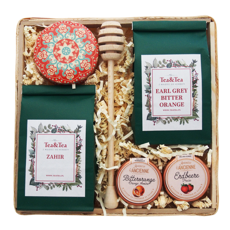 - konfiturka truskawkowa 28g x 1szt.- drewniany nabierak do miodu 17cm x 1szt.